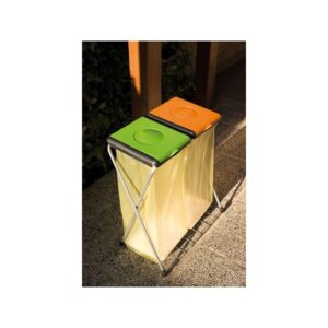 Stojak na śmieci segregowalne podwójny. Bardzo solidne wykonanie – zwiększona odpornść na czynniki atmosferyczne. Stojak do worki wyprodukowany został we Włoszech. Nogi są z lakierowanej stali. Prosty system oznaczenie rodzaju odpadu poprzez oznaczony kolor. Na stojaku można zawiesić worek na śmieci lub torbę foliową za uszy. Do stojaka pasują worki o pojemniści 80-120l (należy dokupić osobno).
