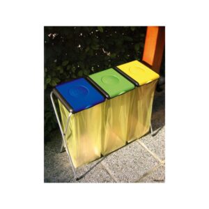 Stojak na śmieci segregowalne potrójny. Bardzo solidne wykonanie – zwiększona odporność na czynniki atmosferyczne. Stojak do worki wyprodukowany został we Włoszech. Nogi są z lakierowanej stali. Prosty system oznaczenie rodzaju odpadu poprzez oznaczony kolor. Na stojaku można zawiesić worek na śmieci lub torbę foliową za uszy. Do stojaka pasują worki o pojemności 80-120l (należy dokupić osobno).