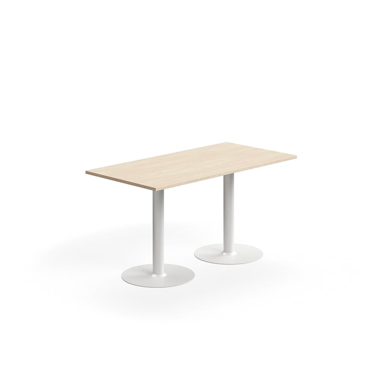 Stół ALVA, 1400x700x720 mm, montaż do podłogi, laminat wysokociśnieniowy, biały/brzoza