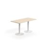 Prostokątny blat z laminatu wysokociśnieniowego HPL zapewnia gładką, twardą i wytrzymałą powierzchnię. Laminat jest łatwy do utrzymania w czystości i umożliwia szybkie usunięcie śladów po filiżankach i kubkach. Podstawa w kształcie filaru jest zakończona dużą, okrągłą stopą z otworami umożliwiającymi przykręcenie stołu do podłogi, co jest zalecane, by zapewnić jego większą stabilność.