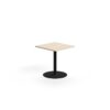Kwadratowy blat z laminatu wysokociśnieniowego HPL zapewnia gładką, twardą i wytrzymałą powierzchnię. Laminat jest łatwy do utrzymania w czystości i umożliwia szybkie usunięcie śladów po filiżankach i kubkach. Podstawa zakończona jest dużą, okrągłą stopą, dzięki której stół jest stabilny.