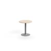 Okrągły blat z laminatu wysokociśnieniowego HPL zapewnia gładką, twardą i wytrzymałą powierzchnię. Laminat jest łatwy do utrzymania w czystości i umożliwia szybkie usunięcie śladów po filiżankach i kubkach. Podstawa zakończona jest dużą, okrągłą stopą, dzięki której stół jest stabilny.