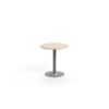 Okrągły blat z laminatu wysokociśnieniowego HPL zapewnia gładką, twardą i wytrzymałą powierzchnię. Laminat jest łatwy do utrzymania w czystości i umożliwia szybkie usunięcie śladów po filiżankach i kubkach. Filar zakończony jest dużą, okrągłą stopą z otworami umożliwiającymi przykręcenie stołu do podłogi, co jest zalecane, by zapewnić jego większą stabilność.