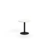 Okrągły blat z laminatu wysokociśnieniowego HPL zapewnia gładką, twardą i wytrzymałą powierzchnię. Laminat jest łatwy do utrzymania w czystości i umożliwia szybkie usunięcie śladów po filiżankach i kubkach. Filar zakończony jest dużą, okrągłą stopą z otworami umożliwiającymi przykręcenie stołu do podłogi, co jest zalecane, by zapewnić jego większą stabilność.