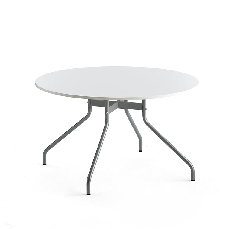 Stół AROUND, Ø1200 mm, biały laminat, szary aluminium