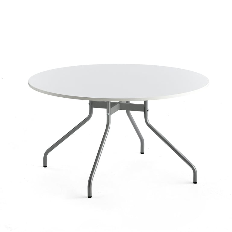 Stół AROUND, Ø1300 mm, biały laminat, szary aluminium