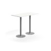 Prostokątny blat z laminatu wysokociśnieniowego HPL zapewnia gładką, twardą i wytrzymałą powierzchnię. Laminat jest łatwy do utrzymania w czystości i umożliwia szybkie usunięcie śladów po filiżankach i kubkach. Podstawa posiada dużą, okrągłą stopę z otworami umożliwiającymi przykręcenie stołu do podłogi, co zalecamy dla dodatkowej stabilności.