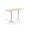 Prostokątny blat z laminatu wysokociśnieniowego HPL zapewnia gładką, twardą i wytrzymałą powierzchnię. Laminat jest łatwy do utrzymania w czystości i umożliwia szybkie usunięcie śladów po filiżankach i kubkach. Filar zakończony jest dużą, okrągłą stopą, dzięki której stół jest stabilny.