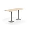 Prostokątny blat z laminatu wysokociśnieniowego HPL zapewnia gładką, twardą i wytrzymałą powierzchnię. Laminat jest łatwy do utrzymania w czystości i umożliwia szybkie usunięcie śladów po filiżankach i kubkach. Podstawa posiada dużą, okrągłą stopę z otworami umożliwiającymi przykręcenie stołu do podłogi, co zalecamy dla dodatkowej stabilności.