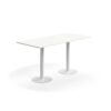 Prostokątny blat z laminatu wysokociśnieniowego HPL zapewnia gładką, twardą i wytrzymałą powierzchnię. Laminat jest łatwy do utrzymania w czystości i umożliwia szybkie usunięcie śladów po filiżankach i kubkach. Filar zakończony jest dużą, okrągłą stopą, dzięki której stół jest stabilny.