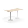 Prostokątny blat z laminatu wysokociśnieniowego HPL zapewnia gładką, twardą i wytrzymałą powierzchnię. Laminat jest łatwy do utrzymania w czystości i umożliwia szybkie usunięcie śladów po filiżankach i kubkach. Filar zakończony jest dużą, okrągłą stopą, dzięki której stół jest stabilny.