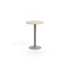 Okrągły blat z laminatu wysokociśnieniowego zapewnia gładką, twardą i wytrzymałą powierzchnię. Laminat jest łatwy do utrzymania w czystości i umożliwia szybkie usunięcie śladów po filiżankach i kubkach. Podstawa filarowa zakończona jest dużą, okrągłą stopą, dzięki czemu stół jest stabilny.