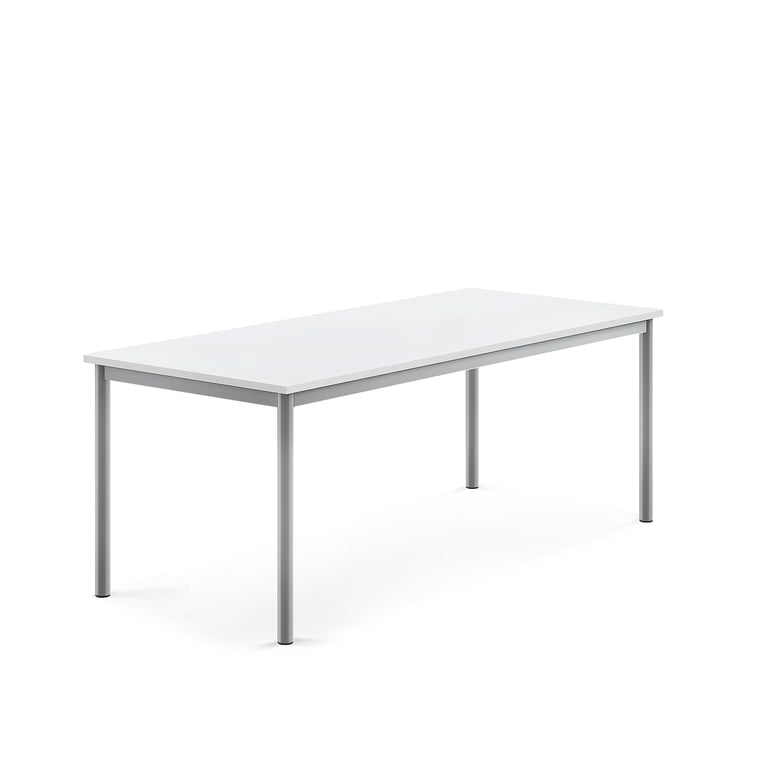 Prostokątny stół z ramą z rur stalowych i blatem z laminatu wysokociśnieniowego. Zgodny z normą EN1729. Stół BORÅS to trwały produkt, dobrze znoszący użytkowanie w trudnych warunkach, np. szkolnych. Zgodny z normą EN1729 – europejskim standardem mebli dla placówek edukacyjnych. Prostokątny blat wykonano z niezwykle wytrzymałego laminatu wysokociśnieniowego HPL. Łatwo go również wyczyścić, dzięki odporności na zacieki. Model BORÅS to idealne stanowisko do prac kreatywnych. Wypukłe krawędzie stwarzają wrażenie miękkości i elegancji oraz zapobiegają typowym urazom powodowanym przez ostre krawędzie. Stół posiada mocną ramę z okrągłych rur stalowych lakierowanych proszkowo. Wyposaż w regulowane nogi i stopki, co ułatwi wypoziomowanie na nierównym podłożu. Nogi i stopki z możliwością regulacji są sprzedawane oddzielnie.
