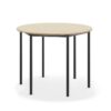 Ta okrągła wersja pomieści stosunkowo dużą liczbę osób. Nikt nie siedzi na rogu i łatwiej nawiązać kontakt wzrokowy z innymi osobami. Blat spoczywa na lakierowanej proszkowo ramie z rur stalowych o okrągłym przekroju. Można dodać regulowane nóżki dla większej elastyczności oraz regulowane stopki, które pozwalają na wypoziomowanie stołu na nierównym podłożu. Regulowane nogi i stopki sprzedawane oddzielnie.