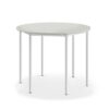 Ta okrągła wersja pomieści stosunkowo dużą liczbę osób. Nikt nie siedzi na rogu i łatwiej nawiązać kontakt wzrokowy z innymi osobami. Blat spoczywa na lakierowanej proszkowo ramie z rur stalowych o okrągłym przekroju. Można dodać regulowane nóżki dla większej elastyczności oraz regulowane stopki, które pozwalają na wypoziomowanie stołu na nierównym podłożu. Regulowane nogi i stopki sprzedawane oddzielnie.