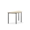 Ten półokrągły model nadaje się jako dodatek do prostokątnych stółów i pozwala uzyskać więcej miejsca do siedzenia. Blat stołu spoczywa na lakierowanej proszkowo ramie z rur stalowych o okrągłym przekroju. Można dodać regulowane nóżki dla większej elastyczności oraz regulowane stopki, które pozwalają na wypoziomowanie stołu na nierównym podłożu. Regulowane nogi i stopki sprzedawane oddzielnie.
