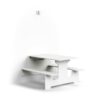 Stół z ramą z litej brzozy i blatem tłumiącym dźwięk, pokrytym przyjaznym dla środowiska linoleum. Stół DECIBEL o klasycznym designie, z blatem o właściwościach tłumiących hałas. Doskonałe rozwiązanie do szkół i przedszkoli. Tłumi dźwięk i pomaga stworzyć bardziej przyjazne otoczenie. Spełnia wymogi dla mebli szkolnych – jest niezwykle trwały i przyjazny dla użytkowników. Trwała rama z litego drewna o dużej odporności na uszkodzenia kontaktowe. Blat pokryty linoleum, które jest wytrzymałe i łatwe w czyszczeniu. Linoleum to materiał przyjazny dla środowiska, wykonany z naturalnych tworzyw, nadających się do recyklingu. W porówniau z innymi materiałami, posiada znacznie mniejszy ślad węglowy. Linoleum używane przez AJ Produkty spełnia wymagania certyfikatu Nordic Ecolabel i posiada doskonałe właściwości tłumiące hałas. Blat jest dostępny w wielu kolorach, co sprawia, że stół łatwo dopasować do posiadanych już mebli.