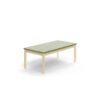 Stół DECIBEL z solidną, drewnianą ramą odporną na kopnięcia i uderzenia. Powierzchnia z trwałego linoleum, które jest łatwe w czyszczeniu. Linoleum jest przyjazne dla środowiska, wykonano je z naturalnych materiałów z możliwością późniejszego recyklingu. W porównaniu do konkurencyjnych materiałów ma niewielki ślad węglowy. Linoleum wykorzystywane do produkcji ma certyfikat Nordic Ecolabel oraz doskonałe właściwości redukujące hałas.