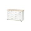 Produkt posiada szuflady po obu stronach – po jednej stronie 3 szuflady jednakowej wielkości, po drugiej – 4 płytkie szuflady, z których jedna jest wąska, a pozostałe szerokie.