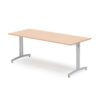 Regulowane stopki i rama w kształcie T. Niezwykle stabilny i wytrzymały stół, który doskonale sprawdzi się w stołówce, sali szkolnej itp. Prostokątny blat pokryty laminatem jest łatwy w czyszczeniu i można go użytkować nawet w trudnych warunkach. Regulowane stopki ułatwiają wypoziomowanie na nierównym podłożu. Stelaż w kształcie T wykonany z owalnych rur. Dostępnych jest kilka wersji stołu, dzięki czemu można wybrać tę optymalną dla swojego zakładu lub dopasowaną do posiadanego już wyposażenia. Kształt ramy ułatwia sprzątanie pod stołem i wokół niego.