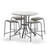 Składany stół posiada trwały prostokątny blat pokryty wytrzymałym i łatwym w czyszczeniu laminatem. Design stołu ułatwia ustawienie kilku sztuk w rzędzie, co pomaga oszczędzać miejsce i tworzyć większe blaty do wspólnej pracy. Składana rama w kształcie T posiada czarne plastikowe stopki dla maksymalnej stabilności. Podstawa chromowana lub lakierowana na kolor szary lub czarny.