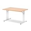 Składany stół z ramą w kształcie litery T i trwałym prostokątnym blatem. Praktyczny stół o składanej konstrukcji to wygodny i wszechstronny mebel, idealny do większości środowisk i wielu różnych zastosowań. Doskonały na stałe i jako stół dodatkowy. Świetne rozwiązanie na konferencje, targi, wystawy i inne wydarzenia. Sprawdzi się także w szkołach. Składana konstrukcja umożliwia łatwe i szybkie rozstawienie i złożenie po skończonym wydarzeniu. Ułatwia także transport i oszczędza miejsce podczas przechowywania. Połącz stół ze składanymi krzesłami z możliwością sztaplowania i stwórz wygodne rozwiązanie.