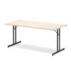 Składany stół z ramą w kształcie litery T i trwałym prostokątnym blatem. Praktyczny stół o składanej konstrukcji to wygodny i wszechstronny mebel, idealny do większości środowisk i wielu różnych zastosowań. Doskonały na stałe i jako stół dodatkowy. Świetne rozwiązanie na konferencje, targi, wystawy i inne wydarzenia. Sprawdzi się także w szkołach. Składana konstrukcja umożliwia łatwe i szybkie rozstawienie i złożenie po skończonym wydarzeniu. Ułatwia także transport i oszczędza miejsce podczas przechowywania. Połącz stół ze składanymi krzesłami z możliwością sztaplowania i stwórz wygodne rozwiązanie.