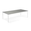 Stół konferencyjny QBUS, 2400×1200 mm, 4 nogi, srebrna rama, jasnoszary