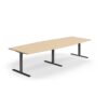 Stół konferencyjny QBUS, kształt łodzi, 3200×1200 mm, rama T, srebrny, brzoza