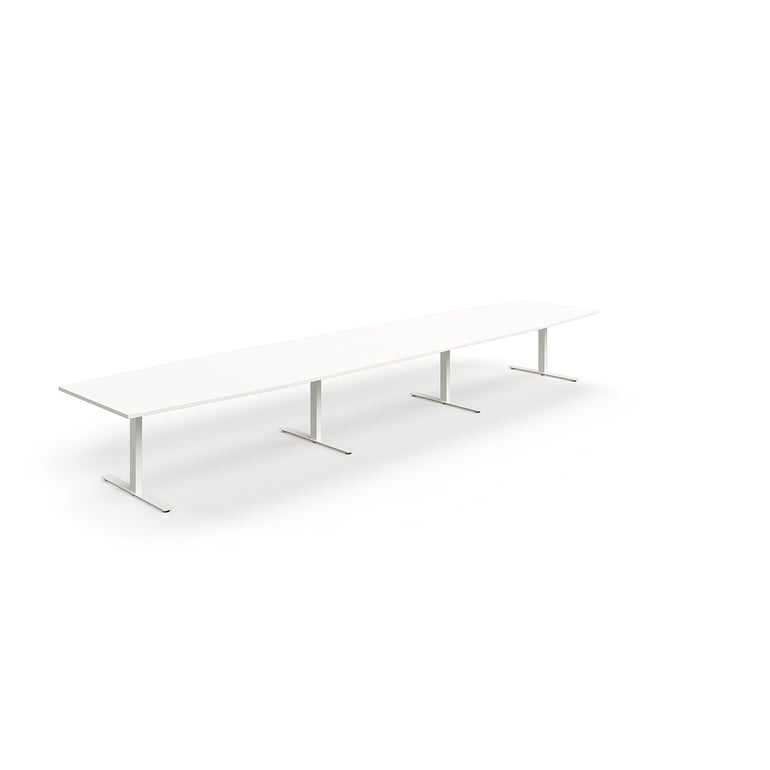 Stół konferencyjny QBUS, kształt łodzi, 5600×1200 mm, rama T, biały, biały