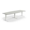Stół konferencyjny z regulacją wysokości, kształt łodzi, 3200×1200 mm, biała rama, dąb