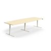 Stół konferencyjny z regulacją wysokości, kształt łodzi, 3200×1200 mm, srebrna rama, dąb