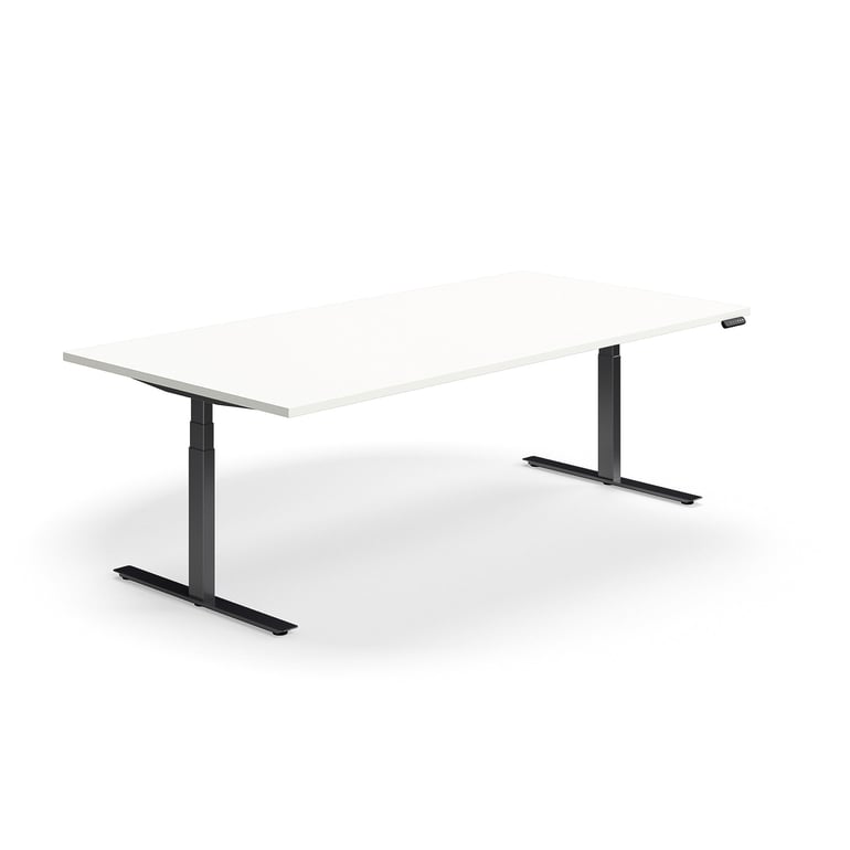 Stół konferencyjny z regulacją wysokości, prostokątny, 2400×1200 mm, czarna rama, biały