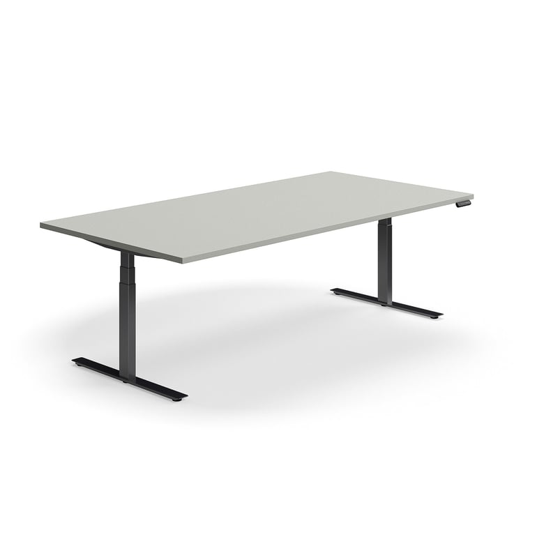 Stół konferencyjny z regulacją wysokości, prostokątny, 2400×1200 mm, czarna rama, jasnoszary
