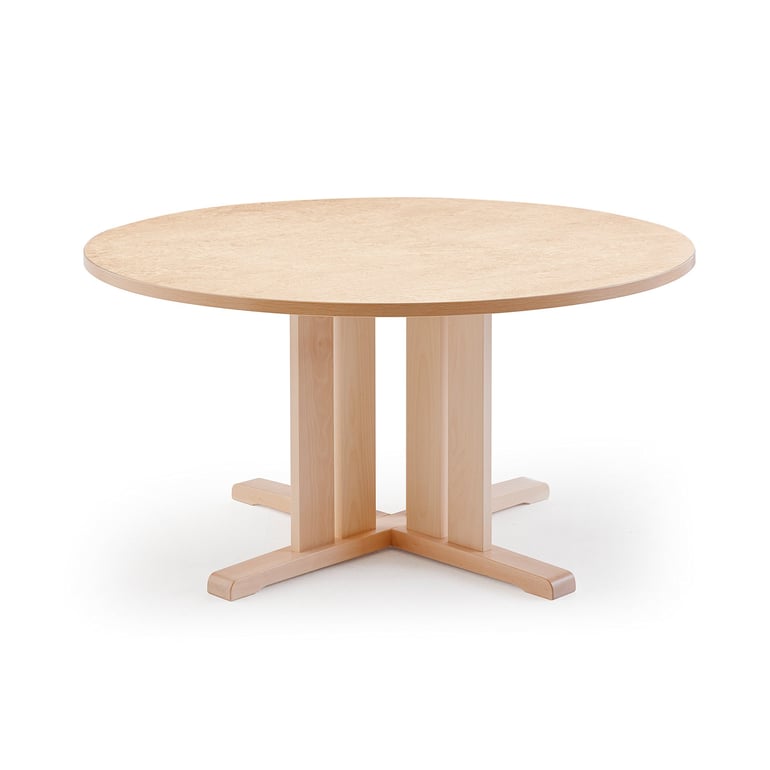 Kompletny stół warsztatowy Stół KUPOL jest stabilny i wytrzymały z podstawą wykonaną z brzozy. Blat nie ma ostrych narożników ani krawędzi dla bezpiecznego użytkowania, dzięki czemu to najlepszy wybór do przedszkoli, szkół, stołówek oraz innych środowisk w których obecne są dzieci. Konstrukcja podstawy ułatwia czyszczenie pod stołem i zapewnia dużo miejsca aby wygodnie usiąść przy stole.