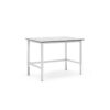 Stabilny blat spoczywa na ramie z rur stalowych o przekroju kwadratowym. Trwałość pozwala na użytkowanie w trudnych środowiskach. Ręczna regulacja wysokości przy pomocy ceowników. Rama pokryta trwałym lakierem proszkowym. Stół posiada blat o grubości 24 mm, wykonany z laminatu wysokociśnieniowego HPL w kolorze jasnoszarym. Krawędź z ABS w kolorze ciemnoszarym. Maksymalne równomierne obciążenie 400 kg.