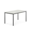Prostokątny blat z laminatu wysokociśnieniowego zapewnia twardą, wytrzymałą i łatwą w utrzymaniu w czystości powierzchnię. Blat osadzony w membranie tłumiącej dźwięki, idealny wybór do klas szkolnych. Ponieważ blat jest prostokątny, można w pełni korzystać z przestrzeni pomieszczenia. Może być połączony z innymi prostokątnymi lub kwadratowymi stołami, dla stworzenia większej powierzchni roboczej. Stół SONITUS położony na stalowej ramie z nogami wykonanymi z trwałych, okrągłych rur. Cała rama malowana proszkowo w dyskretnym kolorze.