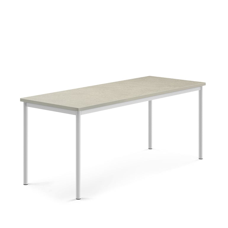 Stół SONITUS, 1800x700x720 mm, linoleum jasnoszary, biały