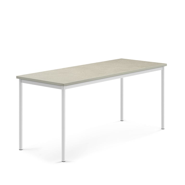 Stół SONITUS, 1800x700x760 mm, jasnoszare linoleum, biały