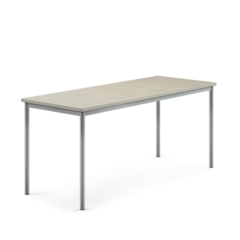 Stół SONITUS, 1800x700x760 mm, jasnoszare linoleum, szary aluminium
