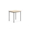 Prostokątne biurko o właściwościach tłumiących hałas. Rama wykonana ze stali rurowej malowanej proszkowo. Blat wykonano z przyjaznego środowisku linoleum. Testowane i certyfikowane na zgodność z EN 1729. W klasach zazwyczaj wiele się dzieje, co może spowodować wysoki poziom hałasu. Szuranie krzesłami, uderzanie w meble, trzaskanie szufladami to tylko przykłady czynników zwiększających poziom hałasu. Może to spowodować osłabienie koncentracji i niską produktywność zarówno wśród uczniów jak i pracowników. Biurko szkolne SONITUS pomaga zlikwidować problem dzięki właściwościom tłumiącym hałas swoich blatów.