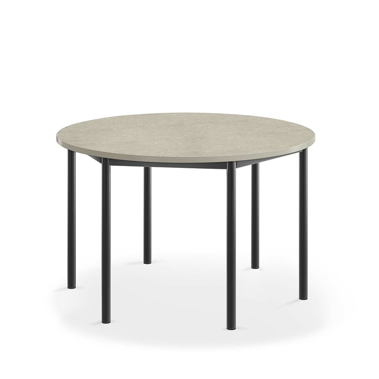 Stół SONITUS, okrągły, Ø1200×720 mm, jasnoszare linoleum, antracyt