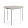 Okrągły blat z laminatu wysokociśnieniowego HPL posiada mocną i trwałą powierzchnię, która jest łatwa w czyszczeniu. Powierzchnia jest dźwiękochłonna, co czyni ten stół doskonałą opcją do sal lekcyjnych.
