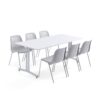 Blat wykonany jest z trwałego laminatu. Materiał jest odporny na zarysowania i wstrząsy, a także na działanie płynów i łatwy do czyszczenia. Elegancka podstawa filarowa zakończona jest dużą, okrągłą stopą, która zapewnia stołowi wyjątkową stabilność.