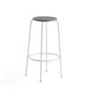 Smukły stołek barowy z ramą z rur stalowych i wytrzymałym siedziskiem. Klasyczny i stylowy stołek barowy do restauracji, barów, hoteli, pubów itp. Stołek barowy z rur stalowych lakierowanych proszkowo na kolor biały. Siedzisko wykonane z laminatu wysokociśnieniowego HPL. Stołek jest trwały i łatwy do wyczyszczenia. Prosty stołek o ponadczasowym designie z podnóżkiem. Zapewnia komfort siedzenia i podparcie dla nóg i stóp.