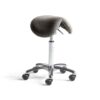 Stołek siodłowy z regulacją wysokości i mechanizmem Flex. Mechanizm ten umożliwia regulowanemu siedzisku podążanie za ruchami ciała i łatwe odnalezienie komfortowej pozycji, trenując jednocześnie mięśnie górnego i dolnego odcinka kręgosłupa. Klasyczny stołek siodłowy z mechanizmem Flex, który koryguje kąt nachylenia siedziska względem środka ciężkości, co pozwala znaleźć oraz utrzymać wygodną i ergonomiczną pozycję podczas pracy.