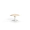 Kwadratowy blat wykonany z laminatu wysokociśnieniowego gwarantuje gładką, twardą i trwałą powierzchnię. Laminat jest łatwy do utrzymania w czystości i umożliwia szybkie usunięcie śladów po filiżankach i kubkach. Podstawa zakończona jest dużą, okrągłą stopą, dzięki której stół jest stabilny.