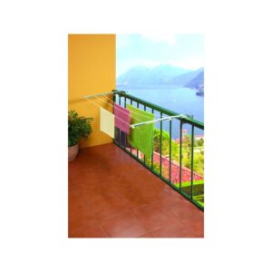 Suszarka do zawieszenia na balustradzie balkonowej. Szerokość suszarki można dopaswoać do dostępnej przesrzeni. Suszarkę można złożyć, gdy nie jest używana.