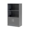 Klasyczna i stylowa szafa z wytrzymałego laminatu z dwiema półkami otwartymi i jedną ukrytą za drzwiami. Mebel może pomieścić około 12 segregatorów A4 na każdej półce i stanowi idealne rozwiązanie do biura, recepcji, szkoły itp. Stwórz wysokiej jakości ukryte rozwiązanie do przechowywania za pomocą stylowych szaf z serii FLEXUS! Połącz i dopasuj szafy i regały FLEXUS o różnych rozmiarach, a może także w różnych kolorach, zgodnie z gustem i preferencjami.