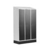 Kompletny moduł szafy szatniowej z perforacją u góry i u dołu drzwi, ramkami na etykiety, drążkami ubraniowymi z 3 haczykami i zamkami cylindrycznymi.